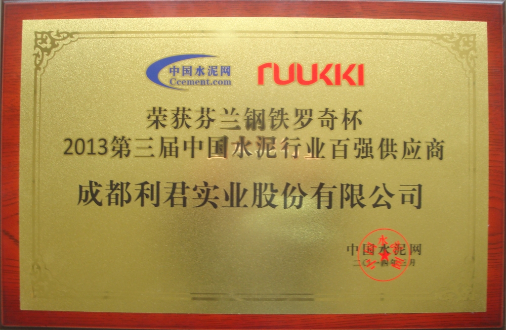 2014年3月公司榮獲第三屆中國水泥行業(yè)百強供應商。