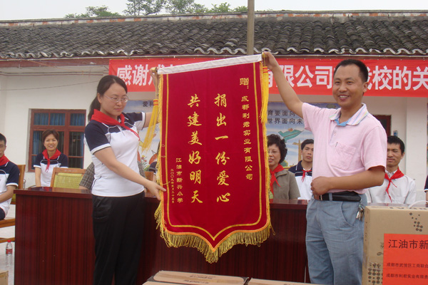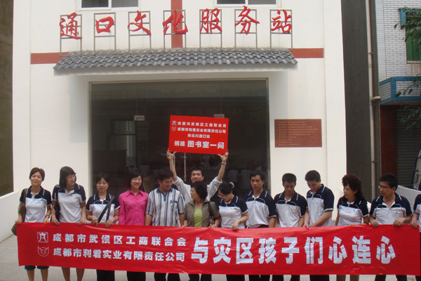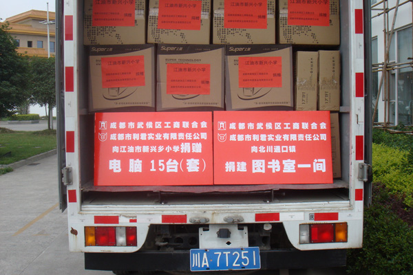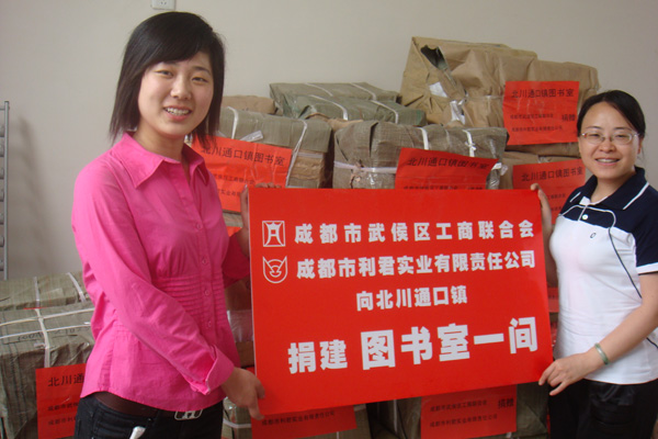 “送一份禮物,寄一份關(guān)愛”,在紀(jì)念“5.12”汶川大地震一周年之際,成都市利君實業(yè)有限責(zé)任公司向地震重災(zāi)區(qū)北川縣通口鎮(zhèn)捐建圖書室一間,捐助圖書5100冊,桌椅、電腦等物資。向江油市新興鄉(xiāng)小學(xué),捐贈電腦15臺(套)。