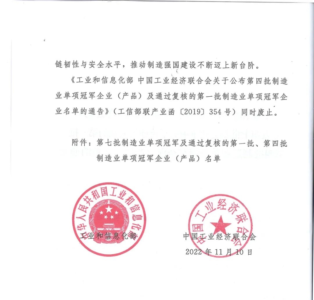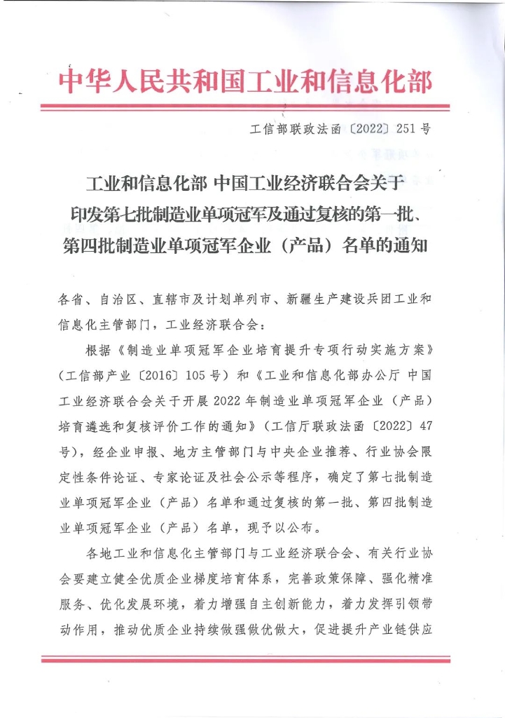 日前,工業(yè)和信息化部、中國工業(yè)經(jīng)濟(jì)聯(lián)合會(huì)發(fā)布了《關(guān)于印發(fā)第七批制造業(yè)單項(xiàng)冠軍及通過復(fù)核的第一